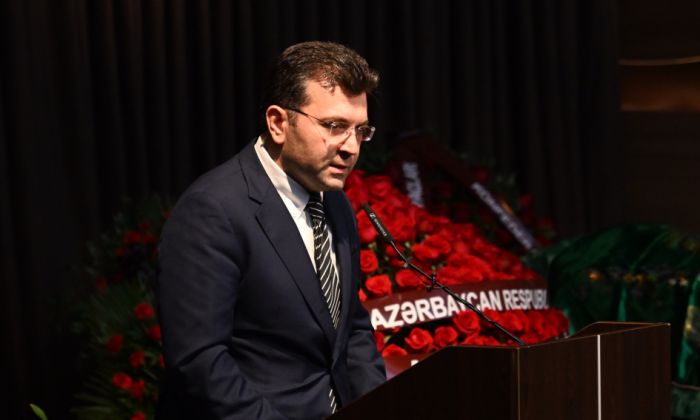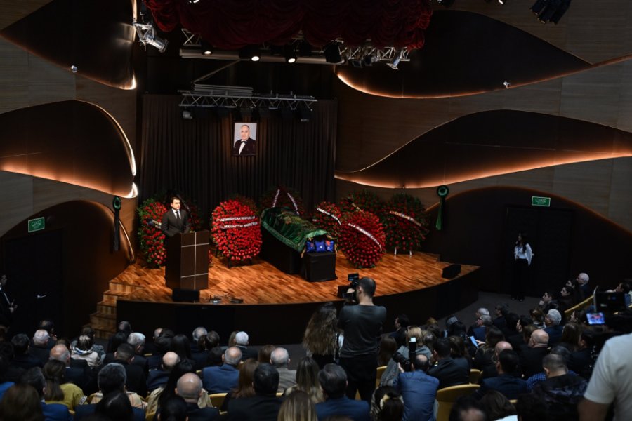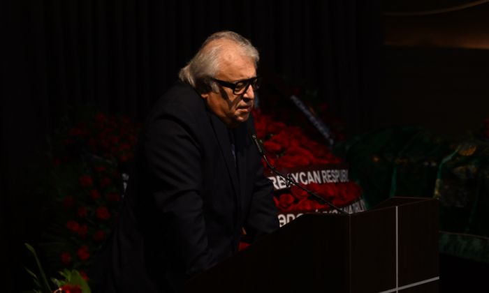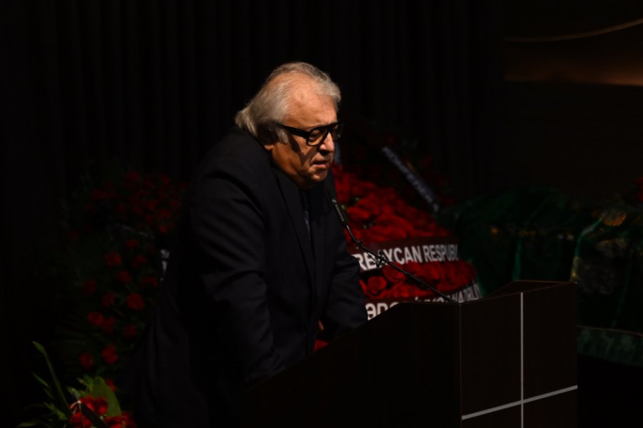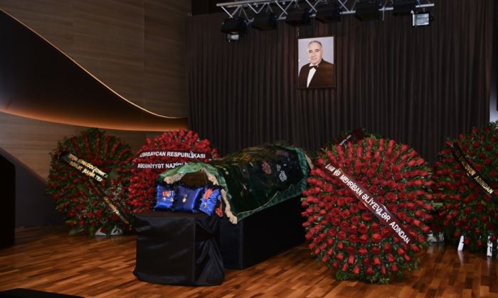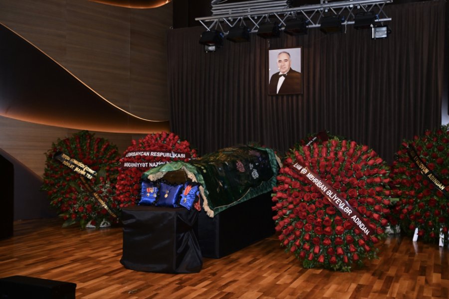 Mərhumun cənazəsi BMM-nin səhnəsində postament üzərinə qoyulmuşdu. Postamentin ətrafına Azərbaycan Prezidenti İlham Əliyev və birinci xanım Mehriban Əliyevanın adından, Mədəniyyət Nazirliyi və digər qurumlar adından əklillər düzülmüşdü.