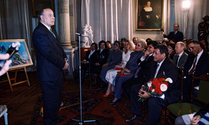 Prezident Heydər Əliyev görkəmli bəstəkar, Xalq artisti Arif Məlikovun Azərbaycan Dövlət İncəsənət Muzeyində keçirilən müəllif gecəsində çıxış edib.