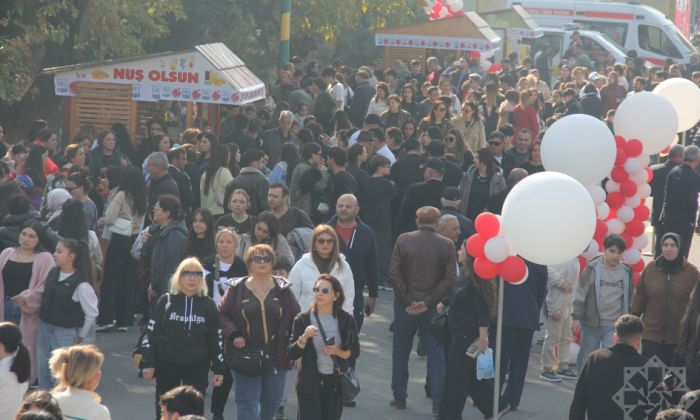Musiqi sədaları altında qonaqları qarşılayan təşkilatçılar yerli müəssisələrdə istehsal olunan təbii nar şirələrini və nar məhsullarını təqdim ediblər.