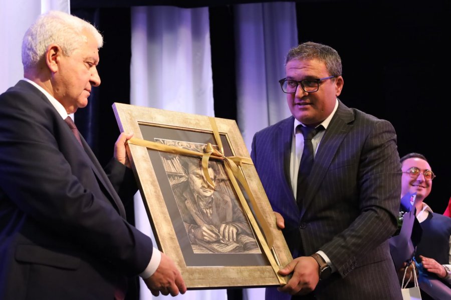 Sonda teatrı kollektivi adından özəl hazırlanmış hədiyyə müəllifə çatdırılması üçün akademik M.Kazımova təqdim edilib.