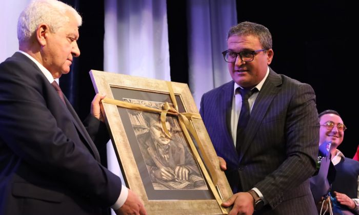 Sonda teatrı kollektivi adından özəl hazırlanmış hədiyyə müəllifə çatdırılması üçün akademik M.Kazımova təqdim edilib.