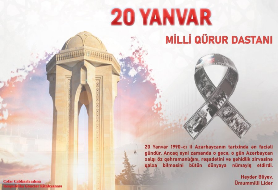 Cəfər Cabbarlı adına Respublika Gənclər Kitabxanasında 20 Yanvar hadisələrinin 36-cı ildönümü ilə əlaqədar “Tariximizin şərəf və qəhrəmanlıq səhifəsi” adlı daycest, “Milli qürur və qəhrəmanlıq tariximiz” adlı virtual və “20 Yanvar qürur və şərəf tariximiz” adlı ənənəvi kitab sərgiləri hazırlanıb.