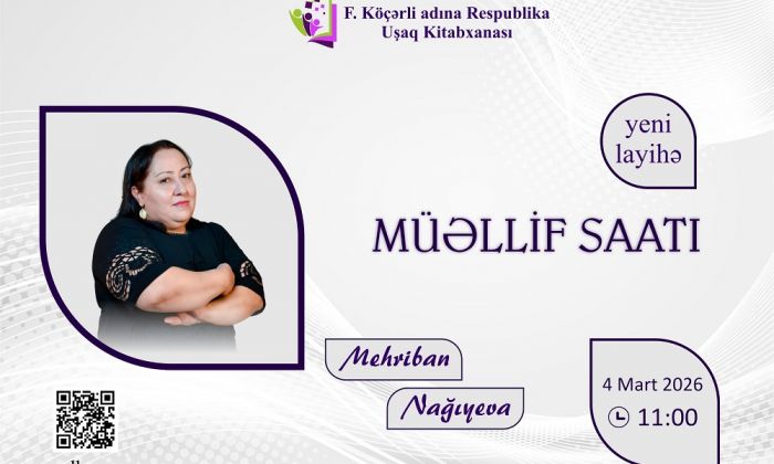 F.Köçərli adına Respublika Uşaq Kitabxanasında “Müəllif saatı” adlı yeni layihəyə başlanılıb.