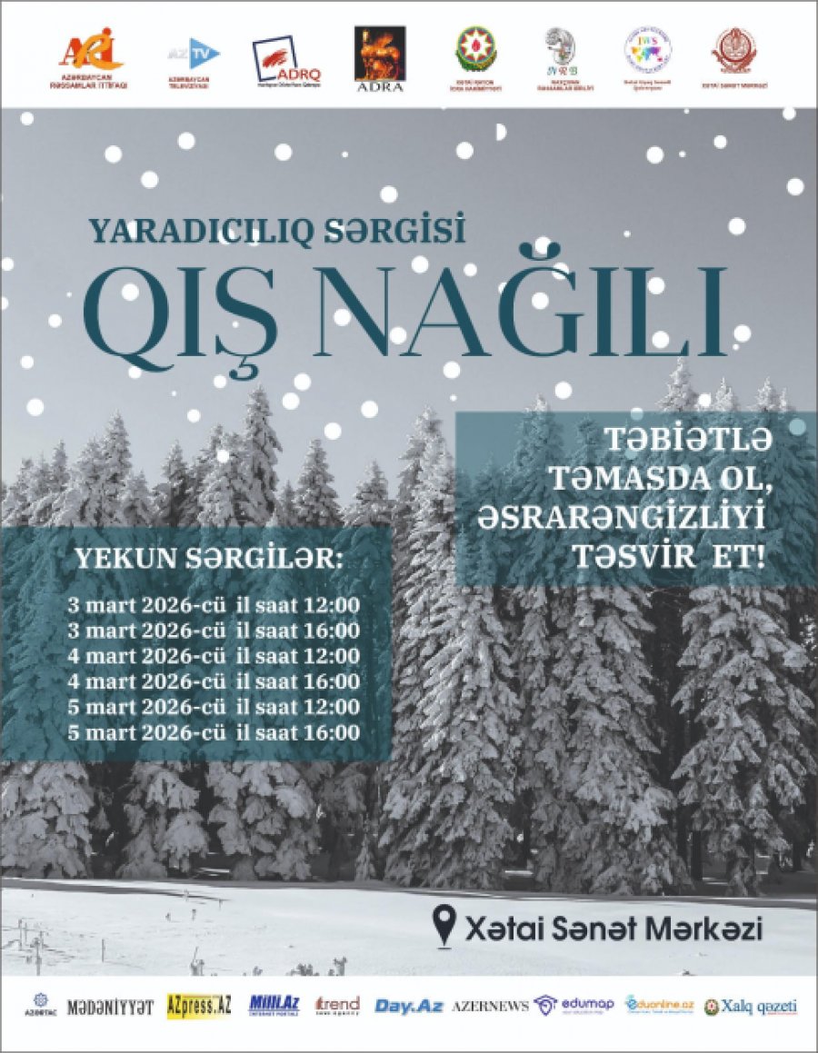 Xətai Sənət Mərkəzində “Təbiətlə təmasda ol, əsrarəngizliyi təsvir et”! şüarı altında keçirilən və böyüməkdə olan nəsli təbiətlə təmasa sövq etmək, fərqli fəsillərdə təbiətin əsrarəngliyini göstərmək və mühafizəsinə həvəsləndirmək məqsədi daşıyan “Qış nağılı” adlı yaradıcılıq sərgiləri açılıb.