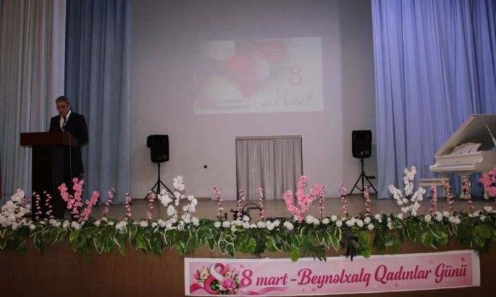 Rayon icra başçısı Natiq Ağayev təbrik çıxışında ölkəmizdə dövlət qadın siyasətindən, bu siyasətin əsasını qoyan Ulu öndər Heydər Əliyevin qadın şəxsiyyətinə böyük hörmətlə yanaşmasından, onun siyasətinin Prezident İlham Əliyev tərəfindən davam etdirilməsindən bəhs edib. Birinci vitse-prezident Mehriban Əliyevanın öz geniş fəaliyyəti ilə beynəlxalq aləmdə Azərbaycan qadınının nüfuzunu daha da yüksəltdiyi vurğulanıb.
