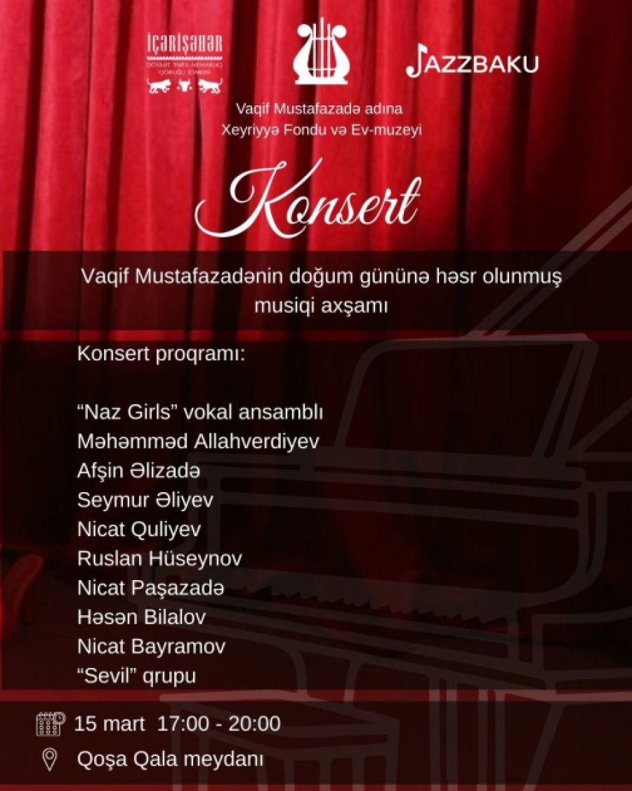 Azərbaycanın dünyaca məşhur cazmeni, pianoçu, bəstəkar, caz-muğamın yaradıcısı Vaqif Mustafazadənin (16.3.1940 – 16.12.1979) anadan olmasının 86-cı ildönümü münasibətilə silsilə tədbirlər proqramı tərtib edilib.
