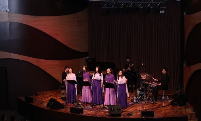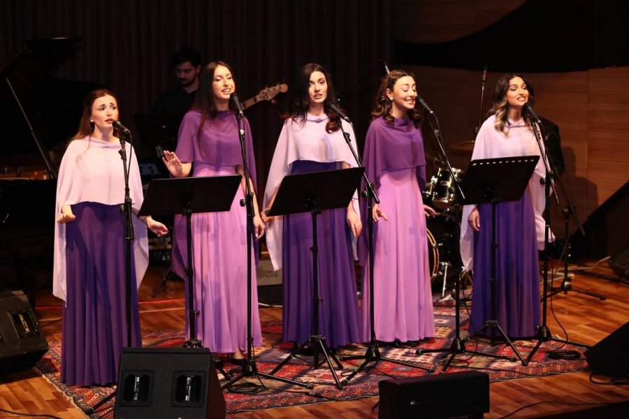 Sonra vokal ansamblın ifasında Azərbaycanın milli və retro musiqisindən seçilmiş əsərlər təqdim olunub.
