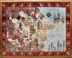 Azərbaycan xəritəsi formasında bölgələrimizin özəlliklərinin, tarixi abidələrinin əks olduğu xalça da maraqlı alınıb. Müəllif miniatürlərdə insanları müxtəlif forma və geyimlərdə verir. Üz cizgiləri konkret çəkilməsə də, bir-birindən fərqli təsvirlərlə verilmiş insanlar süjetin cəlb edən iştirakçısıdır. Xalçaya toxunarkən üzərində onlarla insanın ipəkdən təsvirinin verilməsini bir daha hiss edəndə bu sənətin əslində möcüzə olduğunun fərqinə varırsan.