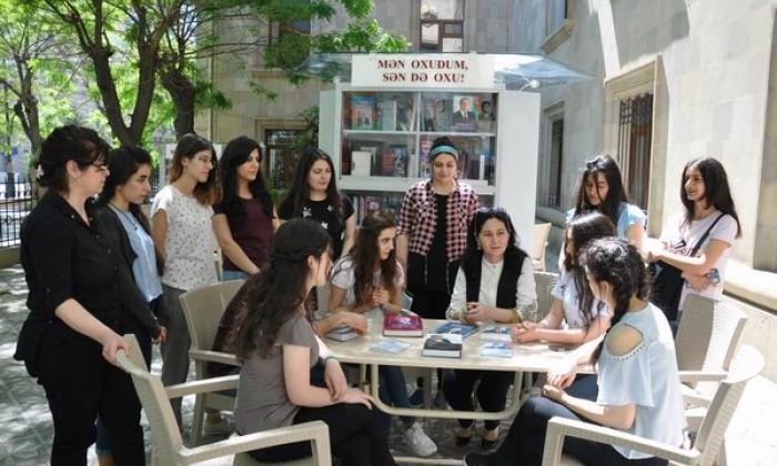 Mayın 10-da Milli Kitabxanada ulu öndər Heydər Əliyevin kitabxanaya hədiyyə etdiyi kitabların sərgisi və “Mütaliəyə münasibətdə Heydər Əliyev nümunəsi” mövzusunda Bakı Dövlət Universitetinin tələbələri və gənc oxucularla diskussiya təşkil edilib. Gənclərin diqqətinə çatdırılıb ki, ulu öndərimiz 1995-1997-ci illərdə 4 dəfə Milli Kitabxanaya gələrək problemlərlə maraqlanıb və ciddi çətinlik dövrlərini yaşayan kitabxananın fondlarının zənginləşdirilməsi üçün tədbirlər görməyi tapşırıb.