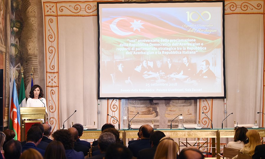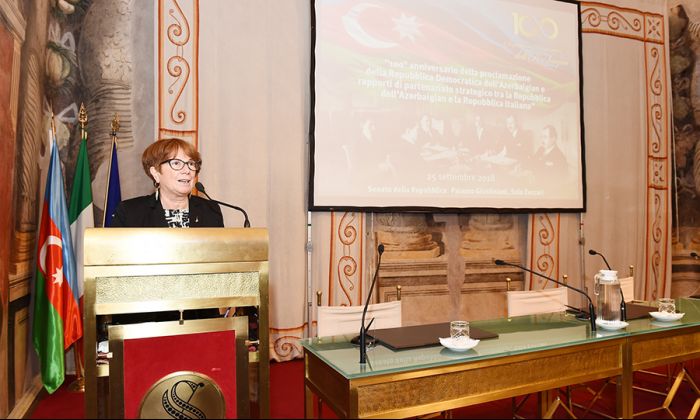 İtaliyada bu cür əhəmiyyətli konfransın keçirilməsinin önəmini qeyd edən İtaliya Respublikası Senatının sədri Maria Elisabetta Alberti Kasellati deyib: “Azərbaycan Xalq Cümhuriyyətinin 100 illik yubileyinin İtaliyada qeyd olunması bizim üçün bir şərəfdir. Bu tədbirin burada keçirilməsinin çox böyük önəmi var. Çünki bu binada İtaliyanın Konstitusiyası imzalanıb. Bu il biz Konstitusiyanın imzalanmasının 70 illiyini qeyd edirik”.
