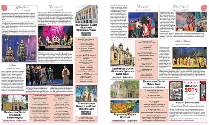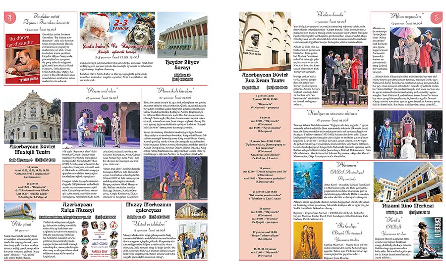 Qeyd edək ki, “Mədəniyyət+Afişa” nəşri Mədəniyyət Nazirliyinin və “ASAN Xidmət”in dəstəyi ilə paytaxtın müxtəlif məkanlarında yayılır. Nəşrin yanvar buraxılışı dekabrın 27-dən etibarən “ASAN Xidmət” mərkəzlərində sakinlərə təqdim olunur.