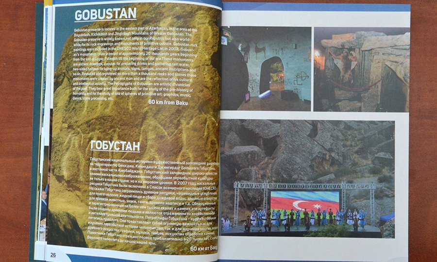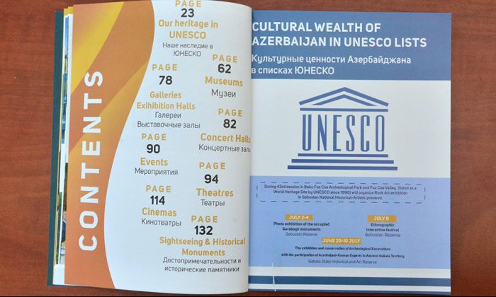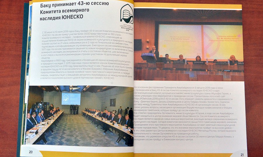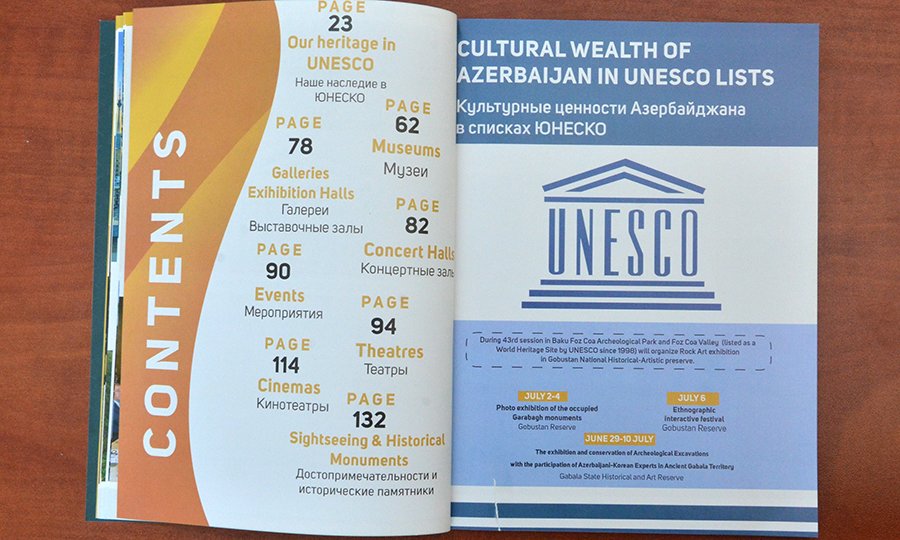“Baku Guide” MMC tərəfindən ingilis və rus dillərində hazırlanan nəşrdə UNESCO-nun Dünya İrs Komitəsi, Azərbaycanın bu quruma üzvlüyü və 2019-cu ildə sədrlik etməsi, 43-cü sessiya və sessiya çərçivəsində keçirilən tədbirlər, o cümlədən Qobustan Milli Tarix-Bədii Qoruğunda, Qəbələ Dövlət Tarix-Bədii Qoruğunda xüsusi olaraq təşkil ediləcək sərgilər barədə məlumat verilir.