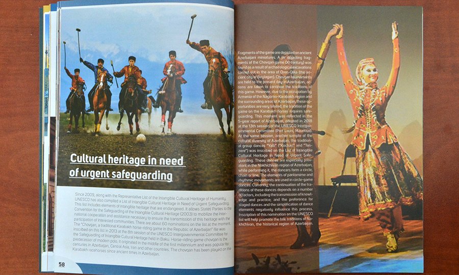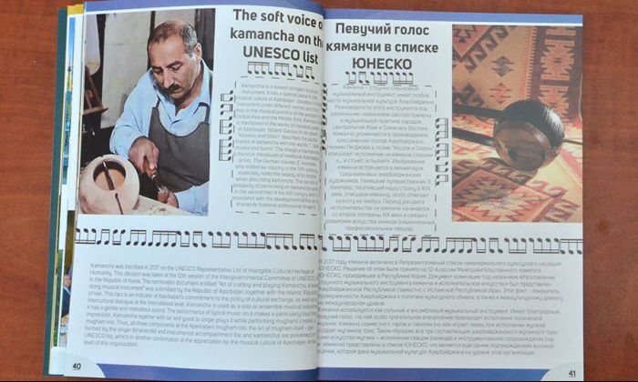 2009-cu ildə Azərbaycan aşıq sənəti UNESCO-nun Qeyri-maddi mədəni irs siyahısına salınıb. “Aşıq sənəti – dil, ədəbiyyat və musiqini yaşadan sənət” başlıqlı yazı bu barədədir. Növbəti ildə (2010) bu siyahı Azərbaycan xalça sənəti ilə zənginləşib. “Naxışlarda yaşayan irs” adlı yazıda xalq sənətinin bu qədim növünün tarixi, məktəbləri, müasir dövrdə xalçaçılıq ənənələrinin yaşadılması və təbliğindən, dünyada ilk olan Azərbaycan Xalça Muzeyindən söz açılır.