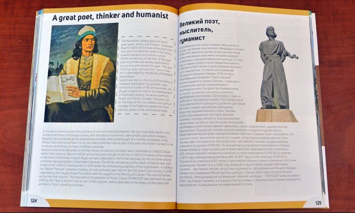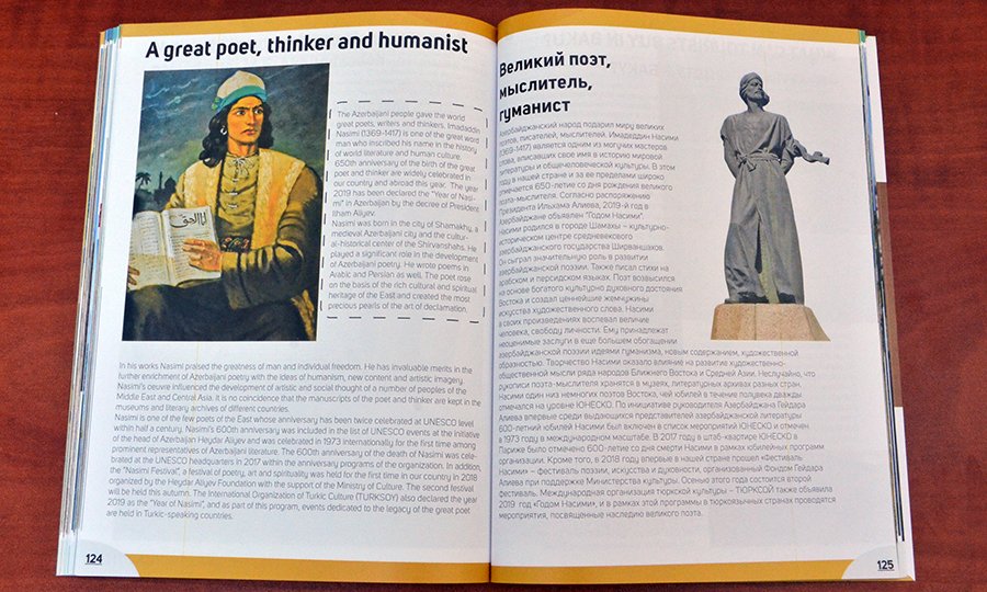 Xüsusi buraxılışdakı yazıların böyük əksəriyyəti isə Azərbaycanın tarixi-mədəni zənginliyinin təqdimatına həsr olunub. Nəşr ölkəmizin keçmişi, müasir inkişafı, mədəniyyətimizin tarixi mənzərəsi ilə bağlı yazı ilə açılır. Azərbaycanın müsəlman Şərqində ilk peşəkar teatrın, kinematoqrafın, operanın yarandığı ölkə olduğu, Orta əsrlərdən Nizami, Nəsimi, Füzuli kimi şair-mütəfəkkirləri ilə tanındığı vurğulanır, 2019-cu ilin ölkəmizdə “Nəsimi ili” elan olunduğu diqqətə çatdırılır. “Böyük şair, mütəfəkkir, humanist” başlıqlı yazıda Nəsimi irsinin dünyada tanınması, şairin yubileyinin iki dəfə (1973, 2017) UNESCO səviyyəsində qeyd olunmasından bəhs olunur.