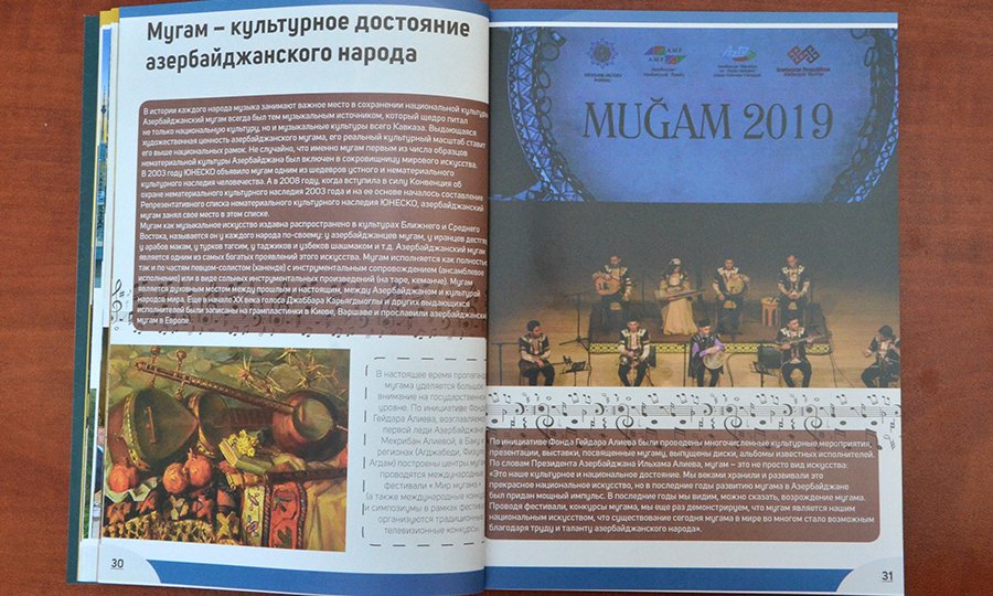 Qeyd olunur ki, Azərbaycan muğamı 2003-cü ildə UNESCO tərəfindən “Bəşəriyyətin şifahi və qeyri-maddi mədəni irsinin incisi” elan edilib. 2008-ci ildə isə UNESCO-nun qeyri-maddi mədəni irs haqqında konvensiyasının qüvvəyə minməsindən və onun əsasında Qeyri-maddi mədəni irs üzrə reprezentativ siyahı tərtib olunmağa başlayandan sonra bu siyahıda Azərbaycandan ilk olaraq muğam sənəti yer alıb. “Muğam Azərbaycan xalqının milli və mədəni sərvətidir” – Prezident İlham Əliyevin bu sözləri diqqətə çatdırılır, Birinci vitse-prezident, UNESCO-nun xoşməramlı səfiri Mehriban Əliyevanın rəhbərliyi ilə digər mədəni irs nümunələrimizin də dünyada təbliği və UNESCO-nun siyahılarına daxil edilməsi istiqamətində görülən məqsədyönlü işlərdən bəhs olunur.