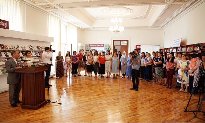 Milli Kitabxananın direktoru Kərim Tahirov çıxış edərək bildirdi ki, 26 avqust Azərbaycan mədəniyyətinin, milli-mənəvi dəyərlərinin hamisi, onların qorunmasında və dünya miqyasında tanıdılmasında əvəzsiz rolu olan Mehriban xanım Əliyevanın anadan olduğu gündür: “Əgər biz milli-mənəvi dəyərlərdən danışırıqsa, onun müstəsna xidmətlərini qeyd etməmək mümkün deyil. Milli Kitabxananın kollektivi adından Mehriban xanımı təbrik edirəm”.