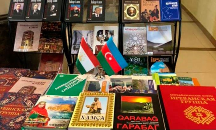 Səfirliyimiz üçün ayrılmış guşədə ümummilli lider Heydər Əliyevin, Prezident İlham Əliyevin həyat və fəaliyyəti ilə bağlı nəşrlər, Xalq yazıçısı Elmira Axundovanın tacik dilində çap olunan “Heydər Əliyev. Şəxsiyyət və Zaman”, Nikolay Zinkoviçin “Həyatın keşməkeşləri” kitabları nümayiş etdirilib.