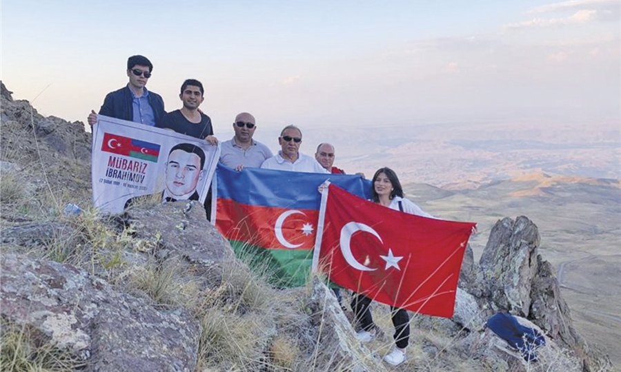 Yürüşçülər Azərbaycan və Türkiyənin dövlət bayraqlarını, həmçinin Milli Qəhrəman Mübariz İbrahimovun portretini Ağrıdağ Dağçılıq və Təbiət İdman Növləri Klubu tərəfindən simvolik olaraq Milli Qəhrəmanın adı verilən zirvəyə qaldırıblar.