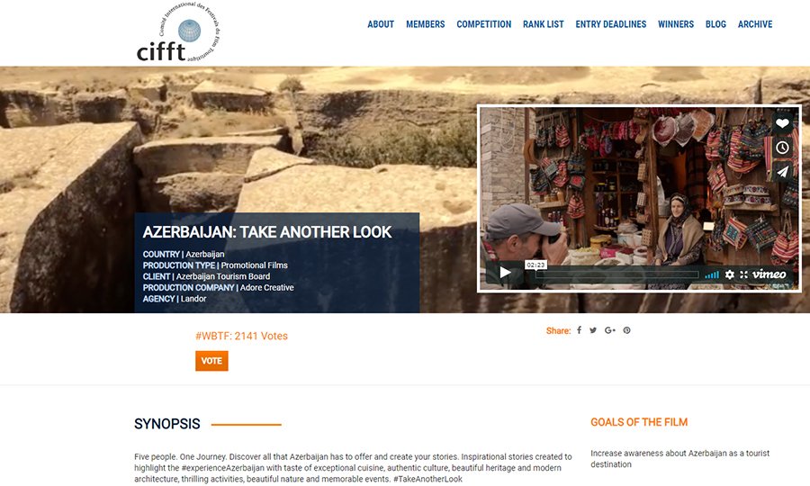 Azərbaycanın turizm brendini qalib etmək üçün bu keçidə daxil olaraq, “Vote” yazısına klik edə bilərsiniz: https://www.cifft.com/film/azerbaijan-take-another-look/