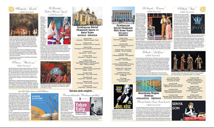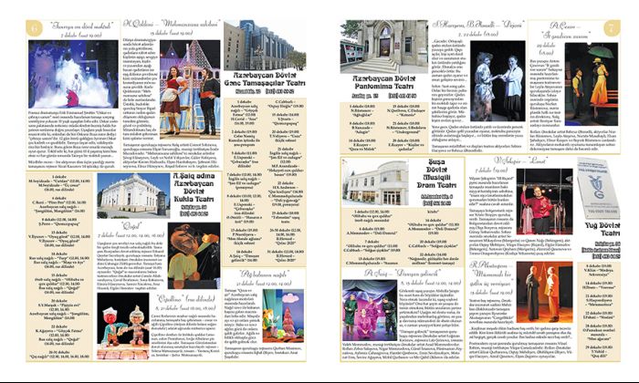 Rəngli tərtibatda, yığcam, praktik formatda hazırlanan nəşrdə hər kəs zövqünə, maraq dairəsinə uyğun məkanı, istədiyi günə, saata uyğun mədəni tədbiri seçərək vaxtını səmərəli dəyərləndirə bilər.