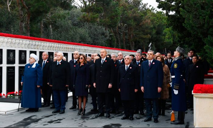 Şəhidlər xiyabanına ümumxalq ziyarətində dövlət və hökumət rəsmiləri, respublikamızdakı dini icmaların başçıları, xarici ölkələrin Azərbaycandakı səfirləri, beynəlxalq təşkilatların nümayəndələri də iştirak ediblər.