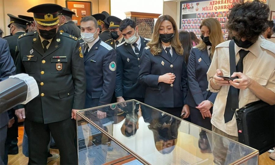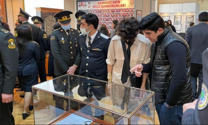 Qonaqlar 2016-cı il fevral ayında atəşkəs rejiminin pozulması nəticəsində şəhidlik zirvəsinə ucalan leytenant Rahib Quliyev, Vətən müharibəsi şəhidlərindən mayor Vüsal Vəliyev, XTQ giziri Rəşad Babayev, XTQ əsgəri Cavid Hüseynov, əsgər Samir Paşayev və Şaiq Kəlbiyevə məxsus 130-dək müxtəlif şəxsi əşyaların, sənədlərin və fotoşəkillərin nümayiş edildiyi sərgi ilə tanış olublar.