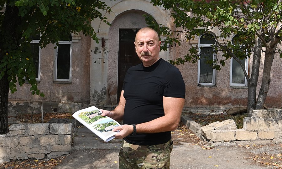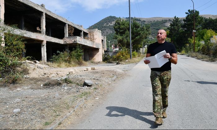 Daha sonra dövlətimizin başçısı Laçın şəhərinin mərkəzi küçəsində ermənilərin törətdikləri dağıntılara baxıb, şəhərin ərazisini seyr edib.