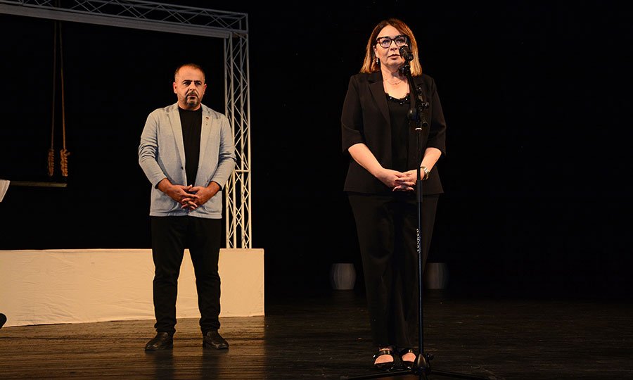 Tamaşadan öncə çıxış edən teatrın baş rejissoru, Əməkdar incəsənət xadimi Mehriban Ələkbərzadə yubiley mövsümündə qarşıda duran yaradıcılıq işləri, təqdim olunacaq tamaşalar haqqında danışıb.
