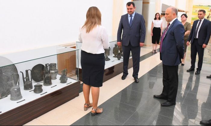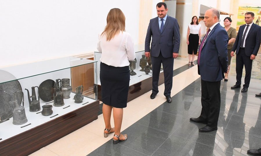 Qeyd edək ki, kitabxana və muzeyin yerləşdiyi bina 1904-cü ildə inşa edilib və İsmayıl bəy Soltanbəyova məxsus olub. Tikili yerli əhəmiyyətli tarixi abidə kimi (inv. № 4061) dövlət qeydiyyatına alınıb. Nazir yerli əhəmiyyətli tarixi abidə olan Hacı Məhəmməd ağanın evini də (inv. № 4060) ziyarət edib. Məlumat verilib ki, XIX əsrə aid olan yaşayış evi XX əsrin ortalarında hərbi komissarlıq, 1986-2015-ci illərdə Tarix-diyarşünaslıq muzeyi, sonra isə Uşaq-gənclər inkişaf mərkəzi kimi istifadə olunub.