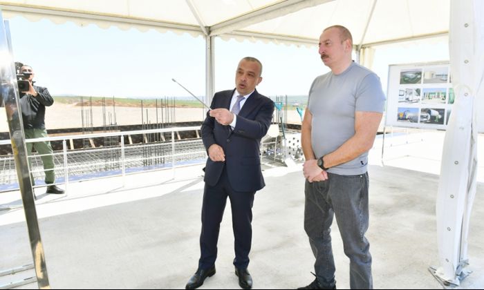 Dövlət başçısı və birinci xanım Füzuli şəhərinin daxili yol-küçə şəbəkəsinin təməlinin qoyulması mərasimində də iştirak ediblər.