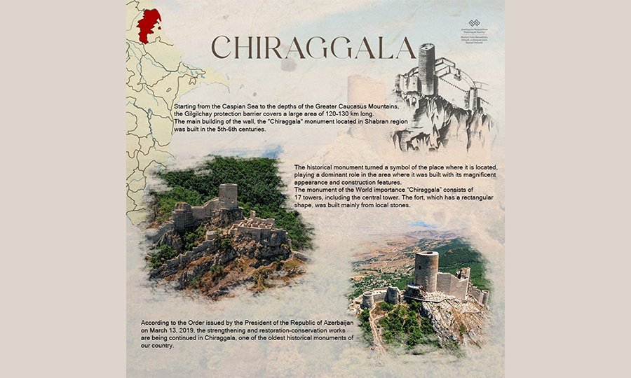 Məlumatda bildirilir ki, Şabran (keçmiş Dəvəçi) rayonu ərazisindəki Çıraqqala, Beşbarmaq və yaxud Xızırzində qala-qayası, Gilgilçay səddi, onun üzərindəki Şəhərgah yaşayış məskəni qədim tariximizi özündə yaşadan abidələrdəndir. Dünya əhəmiyyətli Çıraqqala abidəsi Gilgilçay səddi ilə birlikdə IV-V əsrlərdə hündür qaya üzərində inşa edilib.
