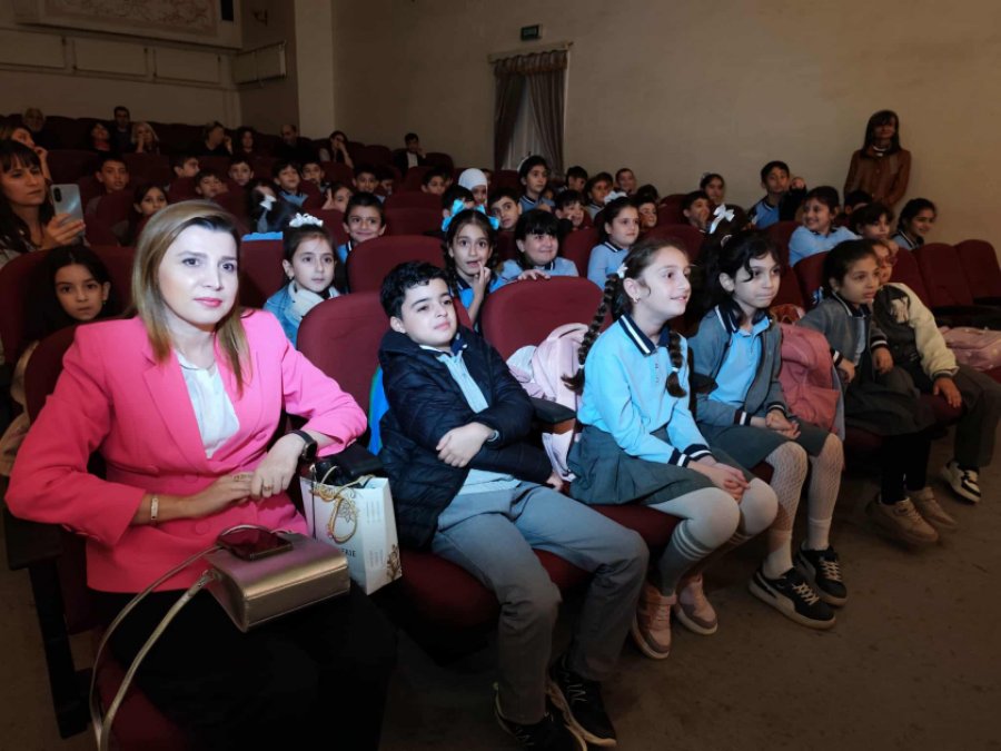 Aktyorlar Mehman Piriyev və Səyad Əliyev balacaları salamlayaraq, onlara teatrın tarixi, fəaliyyəti və gələcək planları ilə bağlı məlumat veriblər.