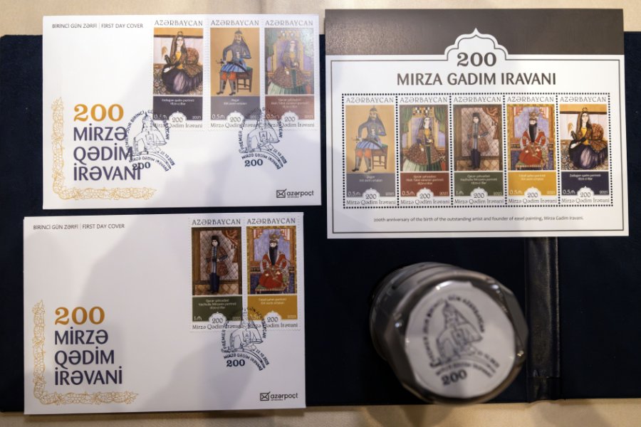 Oktyabrın 22-də görkəmli rəssam, Azərbaycan dəzgah boyakarlığının banisi Mirzə Qədim İrəvaninin (1825–1875) 200 illik yubileyi münasibətilə Azərbaycan Milli İncəsənət Muzeyinin təşəbbüsü ilə “Azərpoçt” MMC tərəfindən dövriyyəyə buraxılan poçt markalarının təqdimatı olub.