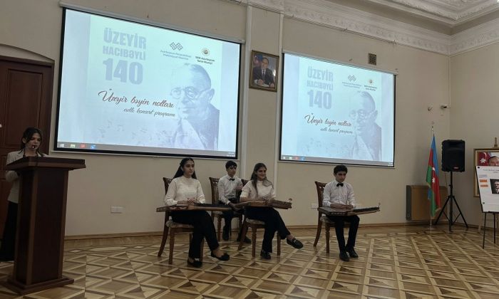 Məktəbin direktoru Bəhriyyə Allahverdiyeva Üzeyir Hacıbəylinin Azərbaycan musiqi mədəniyyətindəki misilsiz rolunu vurğulayıb, onun yaradıcılığının musiqiçi nəsilləri üçün hər zaman örnək olacağını deyib.