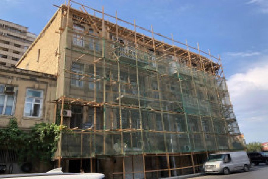 7 noyabr 2023-cü il tarixində binanın bünövrəsinin gücləndirilməsi, fasad hissəsində, daxili həyətində və dam örtüyündə təmir-bərpa işlərinin layihəsi hazırlanmış və qanunvericiliyə uyğun olaraq Azərbaycan Milli Elmlər Akademiyası və Dövlət Şəhərsalma və Arxitektura Komitəsi ilə razılaşdırılıb, Dövlət Xidməti tərəfindən təsdiq edildikdən sonra şirkət tərəfindən bərpa işlərinə başlanılıb. Lakin təmir-bərpa işlərinin gedişi zamanı təsdiq olunmuş layihənin tələbləri kobud şəkildə pozulub.