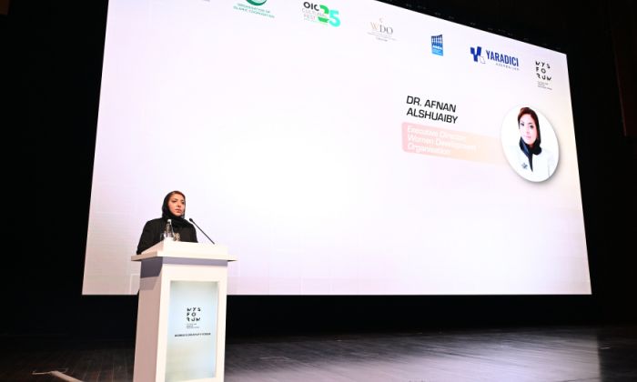 Açılış nitqi ilə çıxış edən WDO-nun baş direktoru Afnan Al-Shuaibi forum təşkilatçılarına təşəkkürünü bildirib, qadınların bilikəsaslı cəmiyyətin formalaşmasında mühüm rol oynadığına diqqət çəkib: “Bu, inkişafın və tərəqqinin göstəricisidir. Bizim əsas missiyamız qadınlara öz potensiallarını kəşf etməyə və reallaşdırmağa imkan yaratmaqdır. Qadınlar həm sahibkar, həm də mədəni innovator kimi cəmiyyətin inkişafına böyük töhfə verirlər. Biz qadınların irəliləməsi, öz işlərini tanıtması və yaradıcı layihələrini həyata keçirməsi üçün bütün imkanlarımızı səfərbər etməyə hazırıq”.