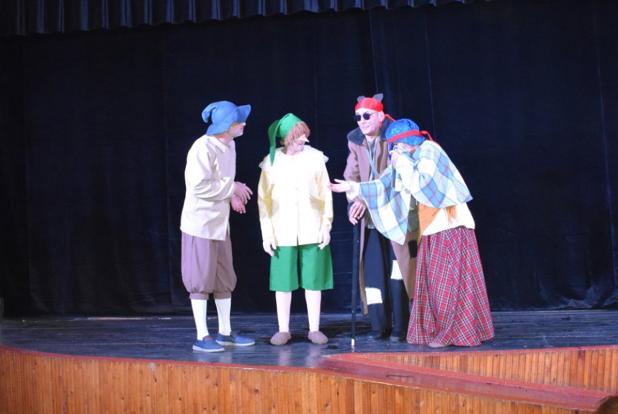 Pinokkio obrazını Aynurə Abbasova, usta Çepetto obrazını Azər Kərimov ifa ediblər. Canlı aktyor, kukla oyunu və kölgə teatrının sintezi əsasında hazırlanan səhnə əsərində Araz Mehrablı, Cəbrayıl Quluşov, İlmar Abdullayev, Məlahət Məmmədova, Elnurə Əliyeva, Fidan Mahmudzadə, Elnarə Razıyeva və digər aktyorlar da rol alıblar.