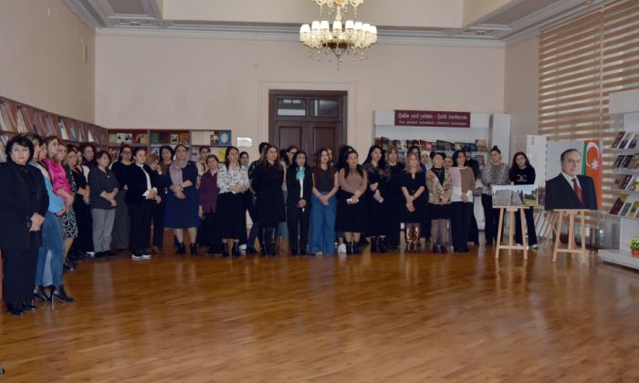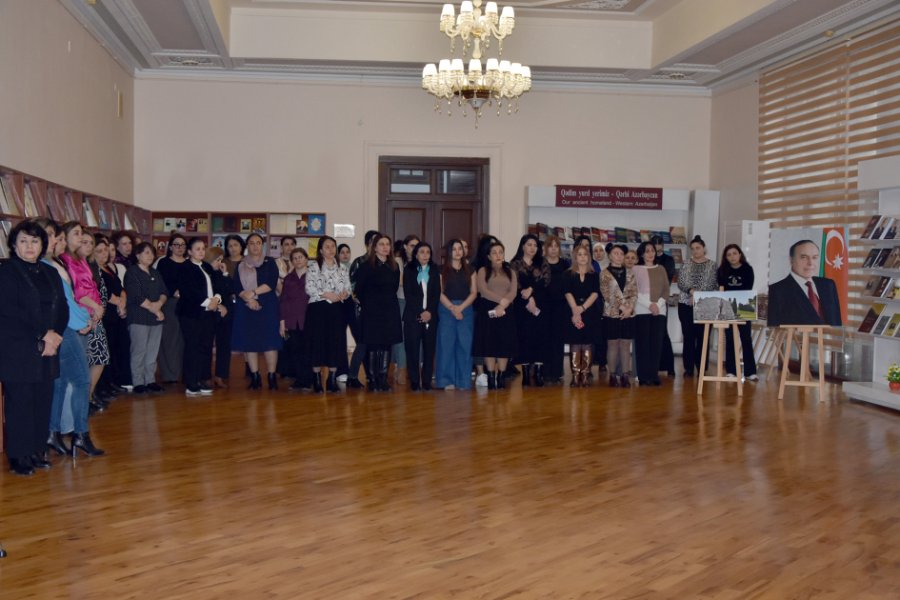 Kitabxanadan bildirilib ki, əvvəlcə Ulu öndərin əziz xatirəsi bir dəqiqəlik sükutla yad edilib.