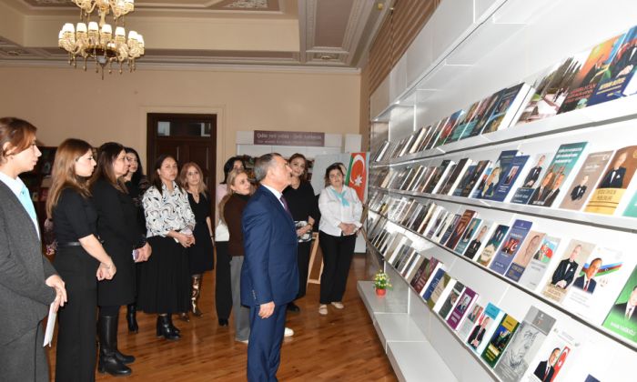 Sonra “Azərbaycanın özü qədər əbədi olan şəxsiyyəti Heydər Əliyev” mövzusunda ənənəvi sərgiyə baxış keçirilib.