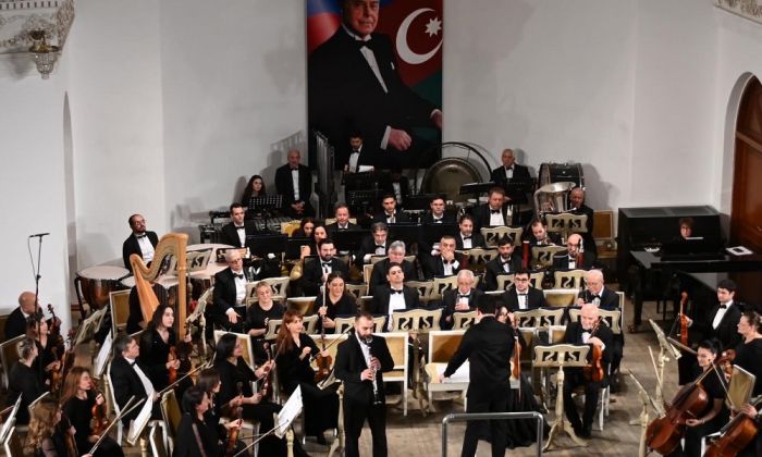 Proqamda Qara Qarayevin “İldırımlı yollarla” baletindən “Adagio”, Aqşin Əlizadənin “Babək” baletindən fraqmentlər, Nazim Əliverdibəyovun klarnet və orkestr üçün “Elegiya” əsəri, Fikrət Əmirovun “Nəsimi haqqında dastan”ı səsləndirilib.
