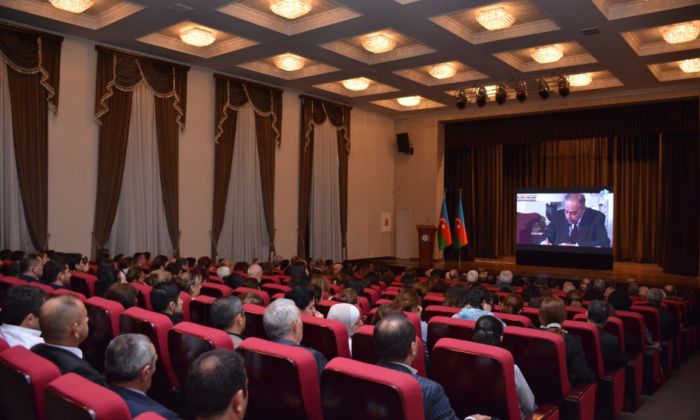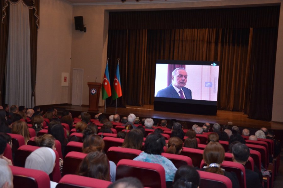 Çıxış edənlər Heydər Əliyevin dövlətçiliyimizin qurulmasında, xalqımızın əmin-amanlığının təmin edilməsində və milli-mənəvi dəyərlərimizin qorunmasındakı əvəzsiz xidmətlərindən geniş söhbət açıblar.