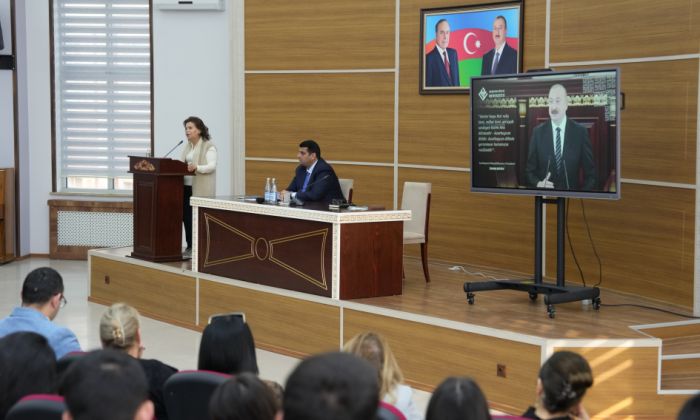 Universitetin rektoru Elbrus İsayev çıxış edərək bildirib ki, Azərbaycan dilinin dövlət dili kimi qorunması və saflığının təmin edilməsi Prezident İlham Əliyevin müəyyən etdiyi strateji dövlət siyasətinin əsas istiqamətlərindən biridir. Dövlət başçısının ana dilinin saflığının qorunmasına dair prinsipial mövqeyi ali təhsil müəssisələrinin üzərinə xüsusi məsuliyyət qoyur və bu məsələyə universitetin tədris prosesi, elmi araşdırmalar və ictimai mühitində ardıcıl şəkildə yanaşılır.