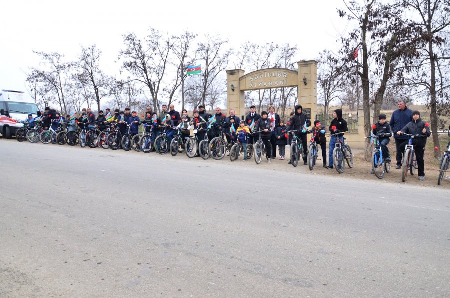 Öncə Qazax rayonunun Daş Salahlı kəndində yerləşən Şəhidlər xiyabanı ziyarət edilib, Vətən uğrunda canlarından keçmiş qəhrəmanların xatirəsi ehtiramla anılıb və buradan yürüşə start verilib.