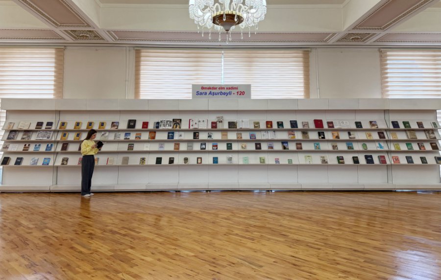 “Əməkdar elm xadimi Sara Aşurbəyli – 120” adlı kitab sərgisində alimin əsərləri, fundamental elmi tədqiqatları, həyat və yaradıcılığı haqqında ədəbiyyatlar sərgilənir.