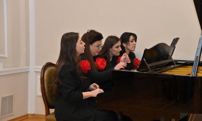 Sonra məktəbin müəllimlərinin ifasında Azərbaycan və xarici ölkə bəstəkarlarının əsərləri səsləndirilib.