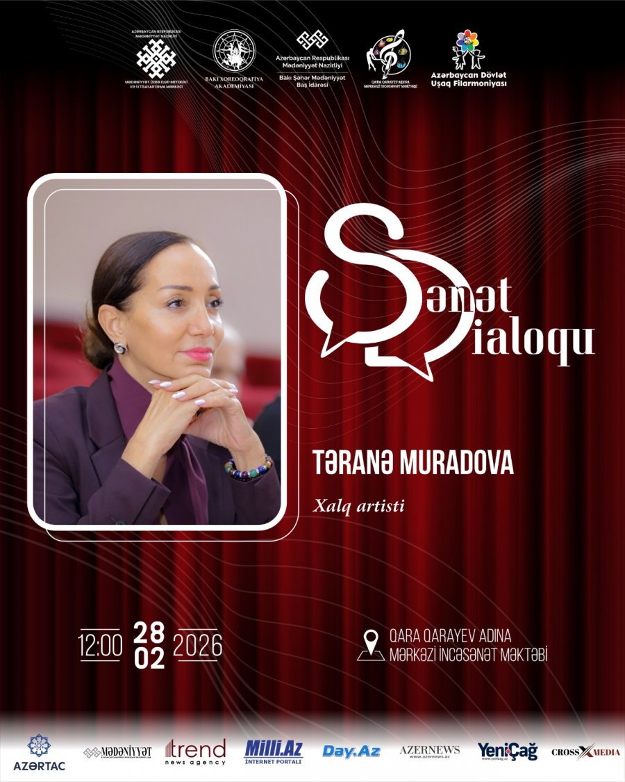 Fevralın 28-də saat 12:00-da Qara Qarayev adına Mərkəzi İncəsənət Məktəbində “Sənət dialoqu” layihəsi üzrə Bakı Xoreoqrafiya Akademiyasının (BXA) prorektoru, Xalq artisti, xoreoqraf və pedaqoq Təranə Muradova ilə görüş keçiriləcək.