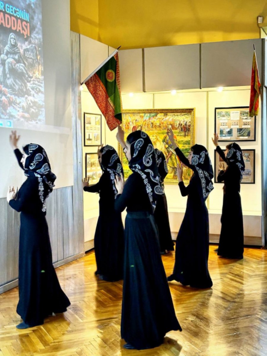 Mərkəzin “Bədii qiraət” dərnəyinin üzvləri Xocalı faciəsinə həsr olunmuş ədəbi-bədii kompozisiya, rəqs nömrələri və səhnəciklər təqdim ediblər.