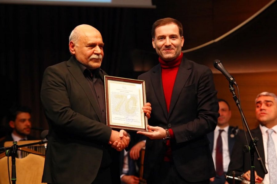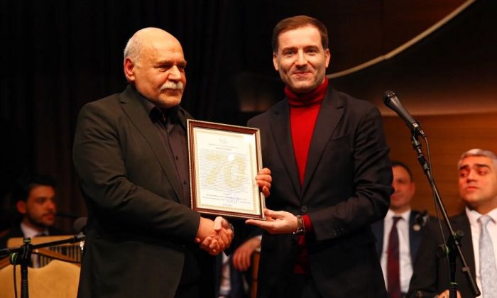 Beynəlxalq Muğam Mərkəzinin direktoru Əməkdar artist, Özbəkistanın mədəniyyət səfiri Sahib Paşazadə çıxış edərək görkəmli tarzənin oğlu və layiqli davamçısı Əməkdar artist Elxan Mansurovun da bu il 70 illik yubileyi olduğunu diqqətə çatdırıb. Mərkəzin adından yubilyara təbrik plaketi təqdim edilib.