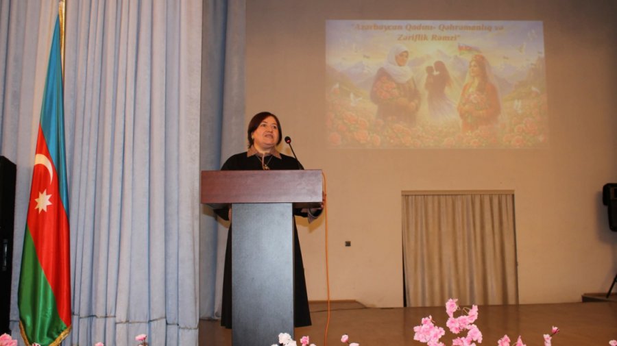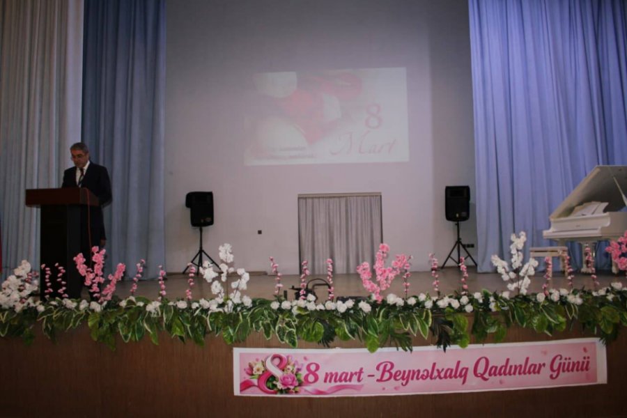 Rayon icra başçısı Natiq Ağayev təbrik çıxışında ölkəmizdə dövlət qadın siyasətindən, bu siyasətin əsasını qoyan Ulu öndər Heydər Əliyevin qadın şəxsiyyətinə böyük hörmətlə yanaşmasından, onun siyasətinin Prezident İlham Əliyev tərəfindən davam etdirilməsindən bəhs edib. Birinci vitse-prezident Mehriban Əliyevanın öz geniş fəaliyyəti ilə beynəlxalq aləmdə Azərbaycan qadınının nüfuzunu daha da yüksəltdiyi vurğulanıb.