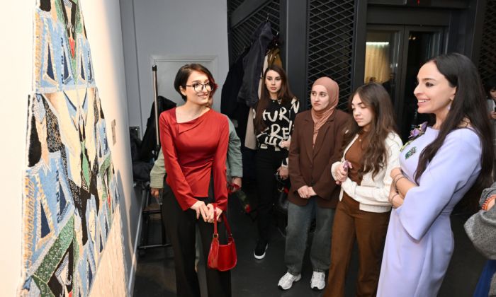 Leyla Əliyeva sərgidə iştirak edib, nümayiş etdirilən əsərlərə baxış keçirib.